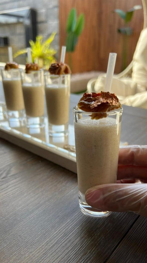 صينية فاخرة من رخام الترافنتينو عليها طبقة من الاكريلك المفرغ تحتوي على 11 فتحة بحجم 3 سم مناسبة لكاسات المحلى أو للـ Welcome Drink